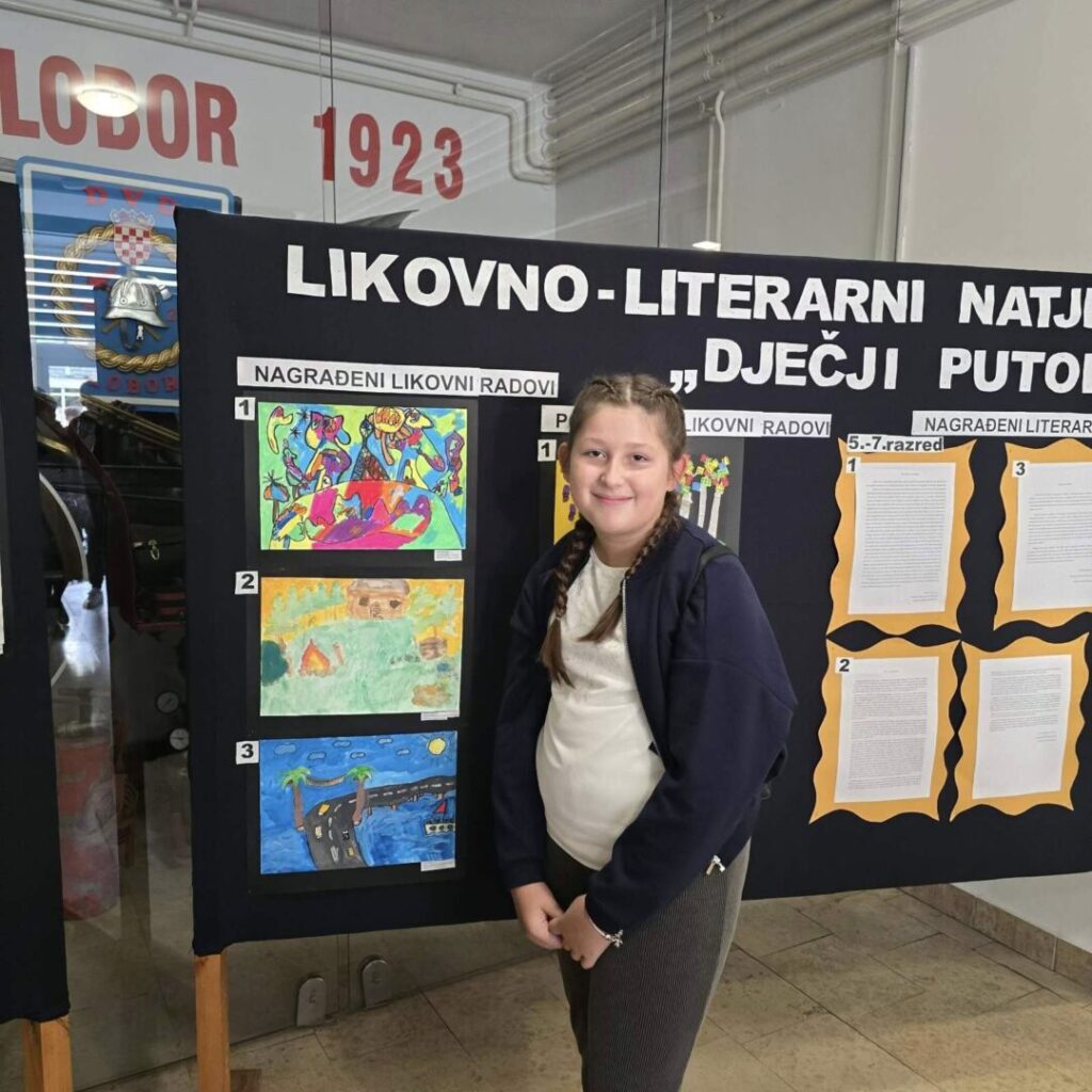 U petak, 10. listopada 2025. godine prisustovali smo u dodjeli nagrada likovno-literarnog natječaja “Dječji putopis” u prekrasnom Loboru, u srcu Hrvatskog Zagorja, — i imamo sjajnu vijest! Naša Mia Bregović iz 4.a razreda osvojila je prvu nagradu za svoj likovni rad! Uz Miju su na izložbi bili predstavljeni i radovi Dore Mandir i Dominika Sabolića, također iz 4.a razreda!
